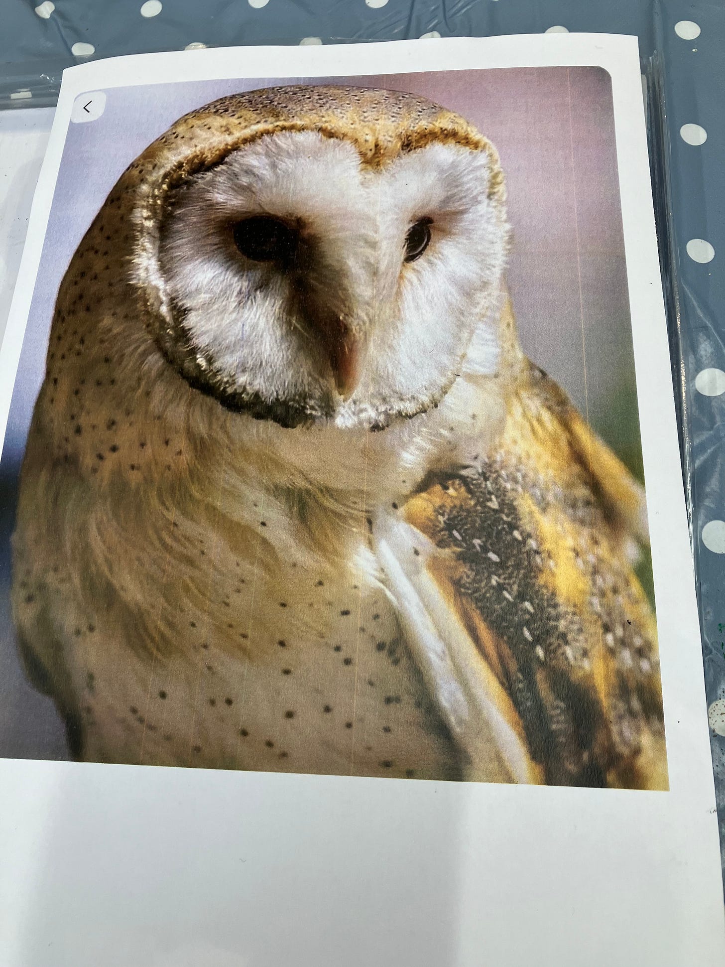 We worked with a gel plate to create a wildlife portrait. I chose a barn owl.